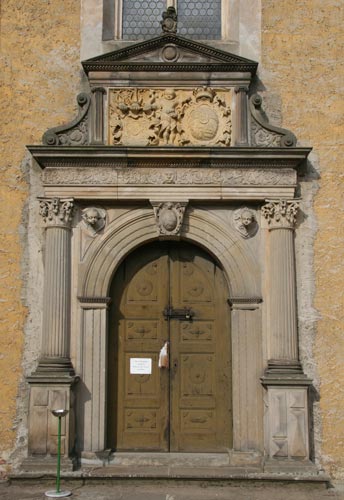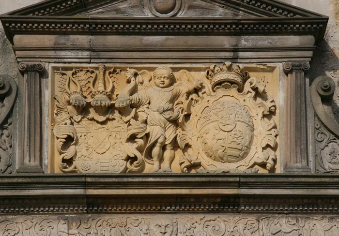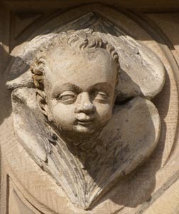 Renaissance-Portals: Engelsköpfe und Löwenmaske.