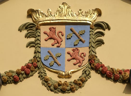 Wappen v. Werthern (die thüringische Familie schrieb sich eigentlich Werther, erst ab Mitte des 17. Jh. Werthern): Der Schild ist geviert: Feld 1 und 4: in Gold ein roter Löwe (Stammwappen), Feld 2 und 3: in korrekterweise schwarzem, hier fehlfarbenem Feld ein schrägrechts gelegter, goldener Baumstamm mit oben einem, unten 2 grünen Eichenblättern. Die hier nicht dargestellte Helmzier wäre ein wachsender, gekrönter, natürlicher bzw. grauer oder roter Wolf oder silberner Bär, je nach Quelle, oben mit drei Straußenfedern in den Farben schwarz-golden-rot, schwarz-rot-gold oder rot-silbern-blau besteckt, je nach Quelle. Helmdecken schwarz-golden / rot-golden. Die Angaben in verschiedenen Bänden Siebmacher sind uneinheitlich (Band: Sa Seite: 6 Tafel: 5, Band: Pr Seite: 444 Tafel: 485, Band: SchwA Seite: 34 Tafel: 24). Daneben gibt es noch ein komplexeres gräfliches Wappen (siehe auch Band: He Seite: 30 Tafel: 34, Band: Pr Seite: 31 Tafel: 35, Band: Pr Seite: 69 Tafel: 91, Band: Sa Seite: 18 Tafel: 17, Band: PrGfN Seite: 27 Tafel: 21).