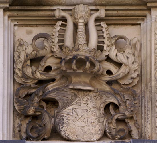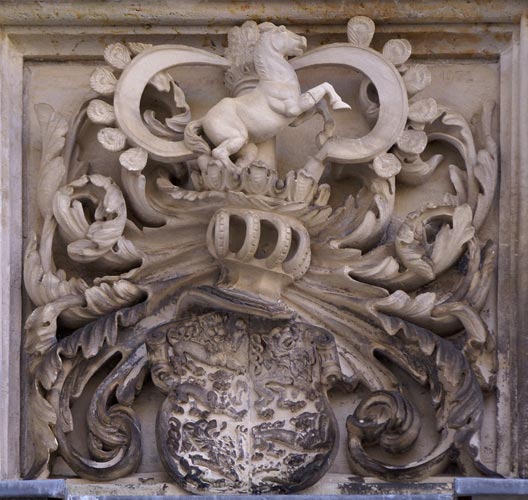 Rathaus - Breite Straße 2 - Schloßstraße 25 - Elbtor (Jägertor) - Schloß Hartenfels, Prunktor - Schloß, Wappen an den Aufgängen zum Wendelstein