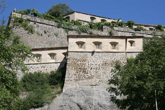 Abb. links: Hangbefestigungen im Südosten, Abb. rechts: Annentor, Feindseite
