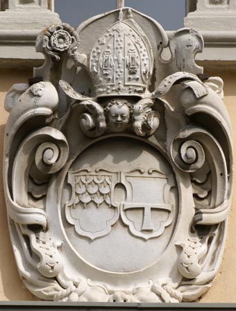 Über beiden 1625 und 1628 errichteten Westeingängen der Prälatur ist außen jeweils eine große Wappenkartusche angebracht, von einer reich verzierten Inful (seit 1352 waren die Seckauer Pröpste infuliert) über einem von Voluten beseiteten Puttenkopf überhöht, hinter der schräg ein Abtsstab hervorkommt.