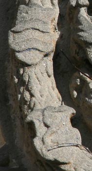 Die Dekorationsfreude der Renaissance äußert sich auch hier außen am Tor in einem beiderseits auf das Mauerwerk übergreifenden Beschlagwerkornament. Unter den beiden untersten Wappenschilden befindet sich auf der Vorlagenbasis je ein identisches Steinmetzzeichen, über der linken Wandvorlage desgleichen. Unter der Tafel befindet sich folgende Bauinschrift in reichverziertem Rahmen: "ANNO DOMINI 1609 HANNS VEITT VON WIRTZBVRG MARGARETA VON WIRTZBVRG GEBORNE VON EBLEBEN".