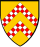 Wappen von Liebenstein, vermutlich ist die Familie Liebenstein mit folgendem Wappen gemeint: in Gold zwei rot-silbern geschachte (hier nicht aufgelöst, sondern mit einer Mittellinie facettiert) Sparren, auf dem Helm mit rot-goldenen Decken ein offener goldener Flug, beiderseits belegt mit den zwei rot-silbern geschachten Sparren. Das Wappen wird beschrieben im Gruber, im Zobel Tafel 199, im Loutsch S. 519 sowie im Siebmacher Band: NaA Seite: 29 Tafel: 45. Die Boland-Sponheimischen Vasallen auf Burg Liebenstein am Rhein, nicht zu verwechseln mit den Schenk von Liebenstein, erloschen 1637. Als Variante führten sie auch den Schild in den genannten Farben gesparrt. Französische Blasonierung: D'or à deux chevrons échiquettés d'argent et de gueules, cimier un vol aux armes. |