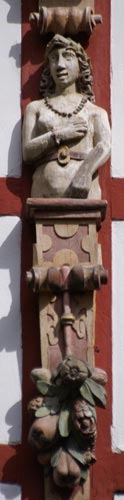 Sein Fachwerk ist von gänzlich anderem Stil, die großen