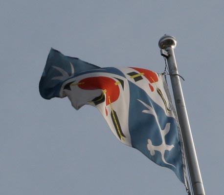 Die auf dem Schloß wehende Flagge zeigt das Wappen des derzeitigen Eigentümers: Nikolaus von Gayling-Westphal (geb. 1942) besitzt das Schloß seit 1975. Das Stammwappen der Gayling von Altheim (auch Geyling geschrieben) zeigt in Blau eine silberne Hirschstange (Geweihstange), auf dem blau-silbern bewulsteten Helm mit blau-silbernen Decken eine silberne Hirschstange (Geweihstange). Es wird im Aschaffenburger Wappenbuch aufgeführt und im Siebmacher Band: Bad Seite: 8 Tafel: 6, Els Seite: 9 Tafel: 11, wobei im Siebmacher als Helmzier jedoch ein beiderseits mit der silbernen Hirschstange belegter blauer Flug angegeben wird.