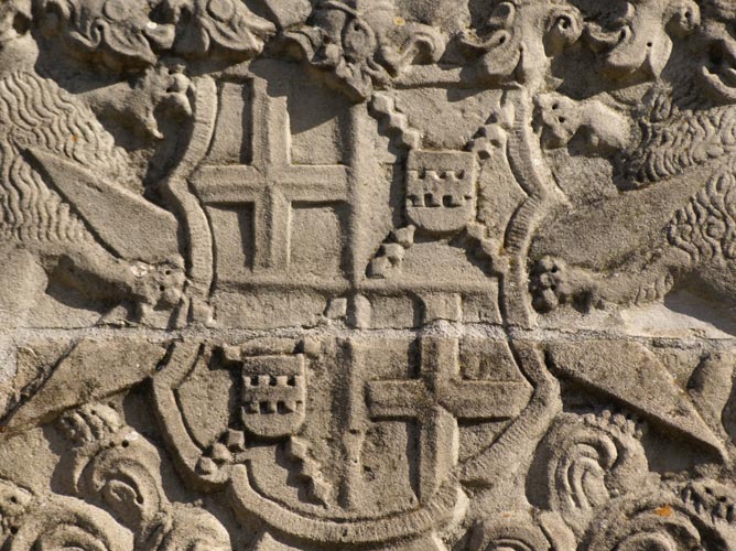 komplexen Wappen sieht man gut die beiden Ordenssymbole und ihre