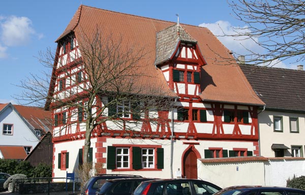 Abb.: Sog. Üsenberger Hof, Adelshof 20 in Endingen, ein aus der Spätgotik stammendes Haus mit steinernem Erdgeschoß und Fachwerkkonstruktion aus dem 15. Jh. (das Holz für das Dachgebälk wurde im Winter 1482/83 geschlagen). Der Adelshof hat seine Bezeichnung nicht von hier ansässigem Adel, sondern hieß früher Adlershof. Heute ist hier seit 1994 das Vorderösterreich-Museum und das Kaiserstühler Verkehrsbüro, nachdem die Stadt Endingen das Haus 1984 erworben und Anfang der 1990er Jahre grundlegend saniert und restauriert hatte.