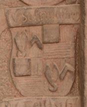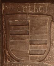 Diese Platte im Würzburger Domkreuzgang ist für den am 1.7.1717 im Schloß Leuzendorf geborenen und am 17.9.1780 verstorbenen Domherrn Karl Friedrich Wilhelm von Erthal zu Leuzendorf und Gochsheim. Er hatte das Glück, daß sein Vorgänger auf der Präbende, Friedrich Carl von Schönborn, zum Bischof gewählt wurde, und so konnte er am 2.9.1729 im Alter von nur 12 Jahren als Domizellar aufgenommen werden und am 29.10.1756 ins Kapitel eintreten. Er war kurmainzischer und bambergischer Kammerherr und Hofrat und Oberamtmann zu Burgebrach. Am 26.10.1755 empfing er die niederen Weihen, am 27.5.1756 die Subdiakonsweihe und 1757 die Priesterweihe. 1764 wurde er Rektor der Würzburger Universität. Karl Friedrich Wilhelm von Erthal wurde am 8.1.1758 Präsident der geistlichen Regierung in Würzburg, 1767 Generalvikar und Geheimer Rat im Fürstbistum Würzburg, schließlich am 5.2.1774 Domkantor und am 2.9.1774 Jubilaeus. Karl Friedrich Wilhelm von Erthal hatte auch jeweils in Mainz und in Bamberg eine Präbende, erstere, die er am 19.7.1736 als Domizellar bekommen hatte, gab er 1774 zurück, letztere, die er 1748 durch die Resignation seines jüngeren Bruders Georg Philipp Valentin von Erthal zu seinen Gunsten bekommen hatte, behielt er bis 1775. Das Thema Mainz war aber nicht damit erledigt, denn er wurde 1774 Geheimer Rat des Mainzer Kurfürsten Friedrich Karl Joseph von Erthal, der immerhin sein Cousin war. Außerdem war er noch seit 1767 Propst zur alten Kapelle in Regensburg und seit dem 27.1.1780 Propst von Stift Haug in Würzburg. Eine Lungenentzündung raffte ihn dahin, den Letzten der Leuzendorfer Linie, bzgl. der dortigen Besitzungen beerbt von den Nachkommen der Tochter seines Bruders Georg Philipp Valentin von Erthal.