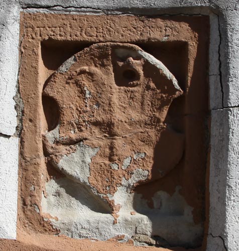 In einer Garteneinfriedung der Denkmalzone Töngeshof ist ein weiterer, sehr verwitterter Wappenstein als Spolie eingelassen (Abb. unten). Oben ist eine teilweise lesbare Inschrift vorhanden, die nicht wesentlich mehr als "(E)RTZBISCHOFF..." erkennen läßt. Klar zu sehen sind der obere Bogen eines Mainzer Rades und eine Krone im oberen Bereich. Damit läßt sich der Stein Johann Schweikhard von Kronberg zuordnen, Erzbischof von Mainz und Kurfürst (regierte 1604-1626). Sein Schild ist geviert, Feld 1 und 4: in Rot ein silbernes Rad, Erzstift Mainz, Feld 2 und 3: Familienwappen Kronberg, geviert, Feld 1: in Rot eine goldene Krone, Feld 2 und 3: in Silber vier (2:2) blaue Eisenhütlein, Feld 4: ledig und rot.