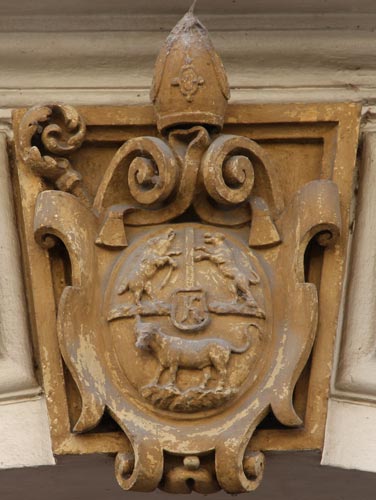 Dieses Wappen enthält nur Felder für das Stift selbst und keine Inhalte, die einem bestimmten Abt zuzuordnen wären. Das Wappen ist halbgespalten und geteilt mit Herzschild, Feld 1: in Grün einwärts ein schwarzer Eber mit Spieß, Feld 2: in Rot eine aufspringende silberne Bracke, Feld 3: in Silber auf einem grünen Boden stehend ein roter Ochse, Herzschild: in Gold der schwarze Initialbuchstabe "K" für Kremsmünster. Die beiden ersten Felder beziehen sich auf die Gründungslegende des Stifts Kremsmünster (mehr dazu siehe dort oder beim Kremsmünsterer Hof in Wels). Über der Kartusche ruht eine Inful; schrägrechts hinter dem Schild ist der Krummstab zu sehen.