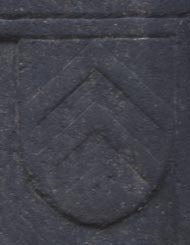 In den vier Ecken der hochrechteckigen Platte befinden sich vier Ahnen-Wappenschilde, jeweils ohne Oberwappen. Graf Gerlach III. von Isenburg-Grenzau war der Sohn von Gerlach II. Graf von Isenburg-Grenzau und Jutta von Eppstein. Seine vier Großeltern waren väterlicherseits Salentin VI. Graf von Nieder-Isenburg (heraldisch oben rechts, in Silber zwei rote Balken) und dessen Frau Adelheid von Isenburg-Büdingen-Grenzau (heraldisch unten rechts, in Silber zwei schwarze Balken) sowie mütterlicherseits Gottfried VII. Graf von Eppstein-Münzenberg (heraldisch links oben, silbern-rot fünfmal gesparrt, kann auch die Form von drei roten Sparren in silbernem Feld annehmen) und dessen Frau Jutta von Nassau-Dillenburg, welche wiederum die Tochter von Adolf Graf von Nassau-Dillenburg (1362-12.6.1420) und Jutta von Dietz (-14.8.1397), der Erbin der halben Grafschaft Dietz, war. Die vier Schilde stehen somit genealogisch nicht ganz richtig nur für die drei erstgenannten Großeltern und für das Dietzer Erbe (heraldisch links unten, in Rot zwei goldene, blau bewehrte, schreitende, hersehende Löwen übereinander), das eine Generation weiter zurückliegend erheiratet wurde.