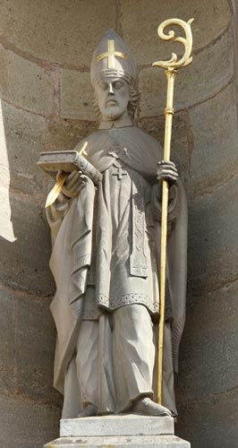 Über dem Haupteingang befindet sich das nicht farblich gefaßte Rokoko-Wappen des Fuldaer Fürstabtes Amand von Buseck (2.2.1685-4.12.1756, regierte 1737-1756). Er war Fürstabt 1737-1752 und Fürstbischof 1752-1756, weil die Fürstabtei am 5.10.1752 durch Papst Benedikt XIV. in den Rang eines Bistums erhoben wurde. Das Wappen ist geviert, Feld 1 und 4: in Silber ein schwarzes durchgehendes Kreuz, Hochstift Fulda, Feld 2 und 3: in Gold ein rot gezungter schwarzer Widderkopf, Stammwappen der von Buseck. Auf der reichverzierten Kartusche ist der Fürstenhut zu sehen, schrägrechts hinter dem Schild der Krummstab, schräglinks das gestürzte Schwert.