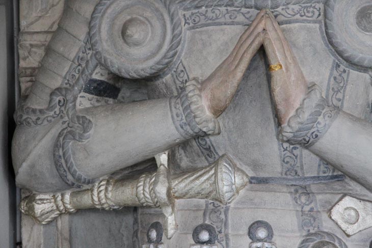 Abb. links: Wappen der von Boineburg, hier silbern-schwarz geviert, auf dem Helm mit schwarz-silbernen Decken ein silbern-schwarz übereck geteiltes Paar Büffelhörner (Otto Hupp, Münchener Kalender 1931; Aschaffenburger Wappenbuch Tafel 20 Seite 114, 102; Siebmacher Band: He Seite: 4 Tafel: 3, Band: Sa Seite: 8 Tafel: 7). Abb. rechts: Wappen der von Hundelshausen, von Rot, Silber und Schwarz geteilt, auf dem Helm mit hier rechts rot-silbernen und links silbern-schwarzen, eigentlich nur schwarz-silbernen Decken ein von Rot, Silber und Schwarz geteilter Flug (Siebmacher Band: He Seite: 14 Tafel: 15, Band: PrE Seite: 104 Tafel: 88, Band: PrE Seite: 201 Tafel: 175, Band: ThüA Seite: 60 Tafel: 46, Jahrbuch des Deutschen Adels, Bd. 3, 1898).