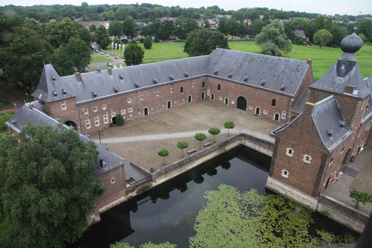 Der Innenhof (Blick nach Südosten) trägt das Gesicht der maasländischen Renaissance.