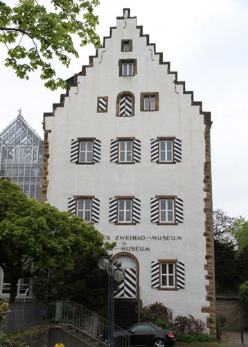 Neckarsulm stand von 1484 bis 1805 unter Deutschordensherrschaft, 321 Jahre lang. Eigentlich war die Herrschaft Scheuerberg mit Neckarsulm seit 1335 kurmainzisch, nachdem die in finanziellen Schwierigkeiten steckenden Herren von Weinsberg sie verkauft hatten, nachdem sie sie zuvor bereits seit 1331 an Mainz verpfändet hatten. Kurmainz verpfändete die Herrschaft wiederum zeitweise an die Herren von Sickingen. Doch der Deutsche Orden, der bereits Besitz in der Nähe hatte, hätte sein Territorium gerne arrondiert, weswegen man 1483 mit dem Erzstift in Tauschverhandlungen trat. Es ging auch um Prozelten, Stadtprozelten und Neubrunn, das Mainz begehrte. Am 27.5.1484 wurden sich der Mainzer Erzbischof Berthold von Henneberg und der Deutschmeister Reinhard von Neipperg einig, und seitdem war Neckarsulm Eigentum des Deutschen Ordens (da es verpfändet war, mußte Kurmainz es zuvor noch schnell von Hans von Sickingen auslösen). Die Henneburg über Stadtprozelten ging dafür in kurmainzischen Besitz über; der letzte Komtur, Graf Georg von Henneberg, zog aus. Ebenso ging Neubrunn an Mainz. Zunächst war der Herrschaftssitz über Neckarsulm noch auf der Burg Scheuerberg, doch die wurde 1525 im Bauernkrieg zerstört. Danach verlegte man den Amtssitz des Deutschen Ordens in das Stadtschloß, das an der südwestlichen Ecke der ehemaligen Stadtbefestigung liegt und eine Verstärkung derselben bildete. Viel ist nicht mehr erhalten, denn die Kriege des 16. bis 20. Jh. (Dreißigjähriger Krieg, Pfälzer Erbfolgekrieg, napoléonische Kriege) hinterließen in der katholischen, kaisertreuen Deutschordensherrschaft immer wieder neue Trümmer. Im Zweiten Weltkrieg kam es zur fast vollständigen Zerstörung der Altstadt bei zwei amerikanischen Bombenangriffen am 1.3.1945 und am 2.4.1945. An die Deutschordensherrschaft erinnern neben den Überresten des Schlosses noch die Kelter am Markt und die im "Deutschordensbarock" erbaute Stadtkirche St. Dionysius. Was an alten Überresten vom Schloß noch existierte, ertrug nach all der Zerstörung noch das häßliche Wiederzusammenflicken der Nachkriegszeit, und so sieht das ehemalige Schloß nach dem Wiederaufbau bis in der Mitte der 1950er Jahre auch aus, trotzdem ist man froh, wenigstens das Wenige aus der Geschichte gerettet zu haben: Gemessen an der häßlichen Beliebigkeit der restlichen Stadt Neckarsulm ist das Schloßensemble eine Insel der Geschichte. Jedenfalls gilt das Erdgeschoß des mehrfach umgebauten Bergfriedes als ältestes Gemäuer der ganzen Stadt. Seit 1956 ist in den Gebäuden das Deutsche Zweirad- und NSU-Museum untergebracht.