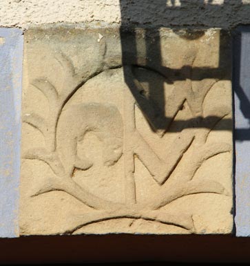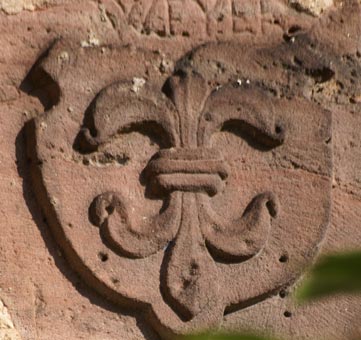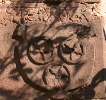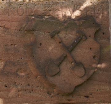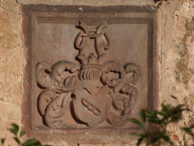 So etwa könnte der Wappenstein vor seiner Verwitterung ausgesehen haben: Versuch einer zeichnerischen Ergänzung des Befundes auf spekulativer Basis unter Verwendung des vorherigen Bildes.