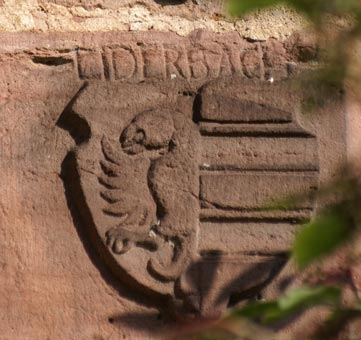 Das Wappen der von Liederbach ("LIDERBACH") wird im Rietstap beschrieben: Gespalten, rechts in Rot ein halber goldener Adler am Spalt, links in Rot zwei silberne Balken (parti, au 1 de gueules à la demi-aigle d'or mouv. du parti, au 2 de gueules à deux fasces d'argent). Die hier nicht dargestellte Helmzier wären zu rechts rot-goldenen, links rot-silbernen Decken zwei Büffelhörner, das rechte gänzlich rot, das linke rot jmit zwei silbernen Balken (cimier: deux proboscides, celle à dextre de gueules plein, celle à senestre de gueules chargé de deux fasces d'argent). Dem entspricht die neue Farbfassung. Das Wappen der oberhessischen, aus Liederbach bei Alsfeld stammenden Familie wird weiterhin im Hessischen Wappenbuch auf S. 96, T. 21 beschrieben. Die Familie, die Burgmannen in Alsfeld und Altenburg stellte, die eine enge Beziehung zum Deutschen Orden hatte, diesem etliche Güter spendete und die mehrere Komture hervorbrachte, erlosch 1624 mit Johann von Liederbach, Deutschordenskomtur in Schiffenberg bei Gießen (Grabstein dort).