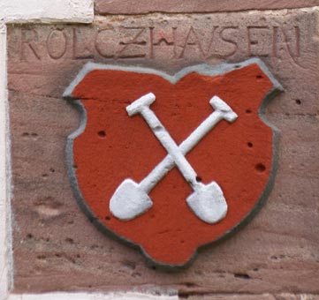 Die aus Niedershausen (Nieder-Rolshausen) stammende Familie von Rolshausen ("ROLCZHAVSEN") haben als Wappenbild in Rot zwei schräggestellte und gestürzte silberne Handruder (Siebmacher Band: OstN Seite: 172 Tafel: 113, Band: He Seite: 23 Tafel: 26, Band: Pr Seite: 331 Tafel: 384, Band: Pr Seite: 61 Tafel: 78; Hessisches Wappenbuch S. 110, T. 24). Die hier nicht dargestellte Helmzier wären die beiden Ruder verschränkt mit zwei silbern-rot übereck geteilten Büffelhörnern (Rietstap: De gueules à deux avirons d'argent passés en sautoir les manches en bas. Cimier les avirons entre deux proboscides coupées alternativement d'argent et de gueules). Dem entspricht die neue Farbfassung. Deren Wappen ist auch noch an der Kirche zu Kirchberg und an der Burg Staufenberg bei Gießen zu finden, wo sie Burgmannen stellte.