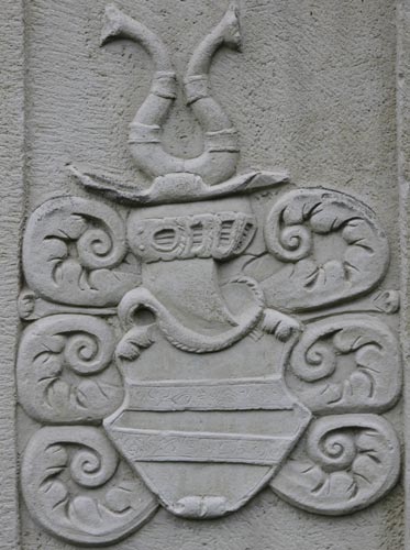 zeigt das Ehewappen der Eltern, heraldisch rechts das Vollwappen
