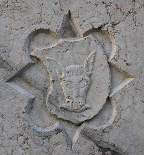 Vierpaß ist ein Schild plaziert mit einem hersehenden Tierkopf