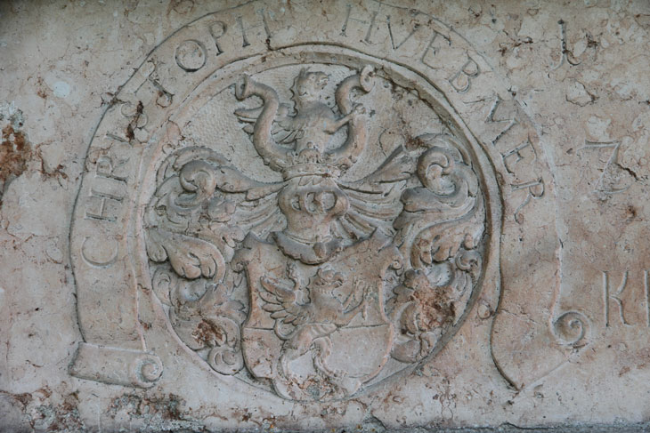 Das Wappen Huebmer wird beschrieben im Siebmacher Band: Bg2 Seite: 17 Tafel: 29: Von Schwarz und Gold geteilt mit einem Greifen in verwechselten Farben auf einem schwarzen Dreiberg, auf dem gekrönten Helm mit schwarz-goldenen Decken der wachsende goldene Greif zwischen zwei schwarzen Büffelhörnern. Die Familie ist eine alte Handelsfamilie aus Wels, die sich dort bis ins Mittelalter zurückverfolgen läßt. Christoph Huebmer war der Sohn von Hieronymus III. Huebmer (1530-1601), 1597-1599 Bürgermeister von Wels. Christoph Huebmer selbst war 1627-1628 Bürgermeister von Wels. Es gibt sogar eine Verbindung zu den obengenannten Seeau: Katharina Huebmer, Tochter von Hieronymus Huebmer II., heiratete Michael Seeauer von Mühlleuthen.