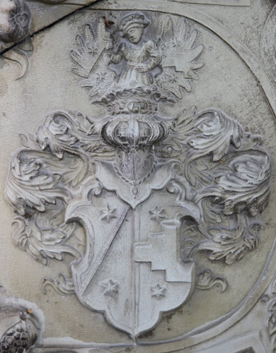 55. Nicht dargestellt werden die zwei Helme des Familienwappens,