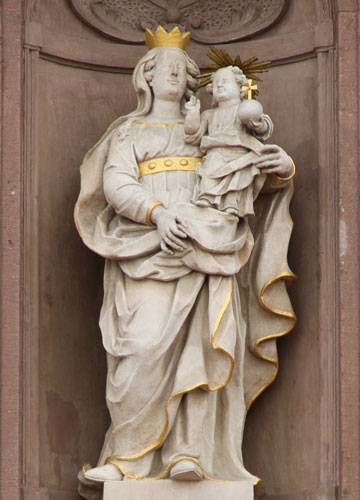 steinerne Marienfigur steht.