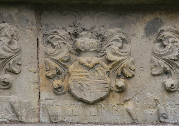Rechts im Bild: Nr. 26, Wappen der von Alvensleben ("V: