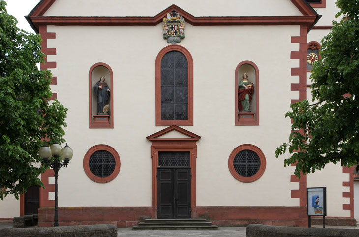 Im Inneren der Kirche gibt es weitere Wappendarstellungen an den Altären, sowohl am rechten wie am linken Seitenaltar ist ein Wappen des Fuldaer Fürstbischofs Adolf von Dalberg zu sehen, alle beide mit fünf Helmen, ein weiteres ist oben am Orgelgehäuse angebracht, dieses ohne Helme, nur mit Fürstenhut. Am Hochaltar ist ein Wappen von Konstantin von Buttlar angebracht, nur mit Fürstenhut und Amtsinsignien.