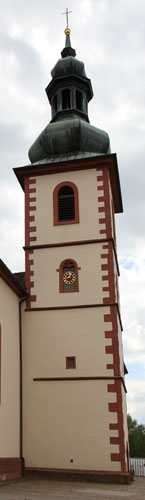 Im Jahre 815 ging das Zehntrecht über die Bewohner des Ortes von Würzburg an Fulda durch Schenkung. Die Pfarrei wurde erstmals 1244 erwähnt. Das Kloster Fulda hat seit spätestens dem 14. Jh. das Patronatsrecht inne. Im Mittelalter gab es hier eine gotische Wehrkirche, wozu der nach Süden zum Magdloser Wasser hin abfallende Hügel gut geeignet war. Vom Mauerring, der früher die ganze Kirche und das einstige Gräberfeld umgab, sind noch Reste erhalten. Diese erste Kirche war noch geostet, und der Turm bildete das westliche Ende; ihm wurde im frühen 18. Jh. ein Stockwerk aufgesetzt. Und das Taufbecken aus dem Jahr 1495 hat sich aus der ersten Kirche erhalten. Im Barock wurde diese Kirche 1717-1720 unter Pfarrer Johann Valentin Ignaz Schmitt umgebaut und erweitert. Die Grundsteinlegung erfolgte am 22.6.1717. Dabei bekam die Kirche eine neue Ausrichtung der Hauptachse, um möglichst viel alte Bausubstanz zweitverwenden zu können. Der Turmsockel blieb, und aus dem ehemaligen Chor entstand die Kreuzkapelle. Die Länge des alten gotischen Langhauses bildete nun die Breite des um 90° gedrehten barocken Langhauses, so daß die kurzen Mauerstücke übernommen werden konnten. Die Ausstattungsarbeiten an Altären, Kanzel, Orgel und Empore zogen sich bis 1730 hin. Die Turmglocken wurden 1745 fertiggestellt. Eine zweite Erweiterung fand 1925-1927 unter Pfarrer Franz Winter statt. Bis zum Choransatz blieb die alte Bausubstanz bestehen, doch den alten Chor riß man ab, um ein querstehendes Zwischenstück von etwa gleichen Dimensionen wie das barocke Langhaus einzusetzen. Der von zwei Sakristeiräumen flankierte Chor mit dem Altarraum wurde im Süden an das eingeschobene Querhaus angesetzt. Zuletzt wurde die Kirche 1973-1977 und 2000-2003 renoviert.