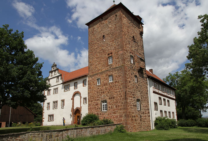 In der Renaissance wurde die Niederungsburg 1572-1574 zur Sommerresidenz der Fürstäbte entsprechend wohnlich und schloßartig ausgebaut. Die Wehrhaftigkeit der Anlage stand nicht mehr im Vordergrund. Aus dieser Zeit stammen die geschweiften Ziergiebel und die prächtigen Holzvertäfelungen im Innern. Der Bergfried und die wehrhaften, sehr dicken Außenmauern aller vier Flügel der Burg wurden übernommen, aber beim Ausbau wurde den Wohnflügeln ein weiteres Fachwerkgeschoß hinzugefügt. Zeittypisch wurde auf Kosten der Verteidigungsbereitschaft ausgebaut, wobei auch alte Schießscharten vermauert wurden; und mit dem außen sichtbaren Fachwerk nahm man auch eine neue Verwundbarkeit in Kauf. Hofseitig wurden die Gebäude völlig neu gestaltet; die Hoffronten sind alle neu und von geringerer Stärke als die alten Außenmauern aus dem 14. Jh.