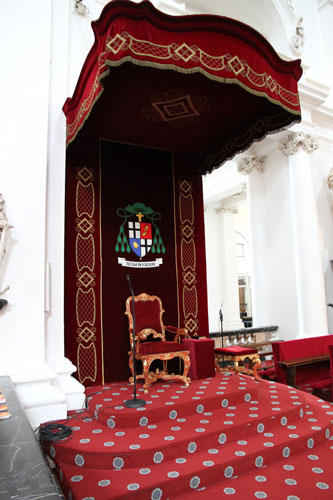 linkerhand an der Südwand der Sitz des amtierenden Bischofs, ein