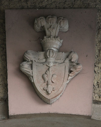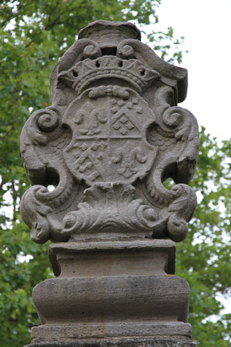 Die gleiche Wappenkombination ist am Torbogen in der Verbindungsmauer zwischen Mittlerem und Oberem Schloß angebracht.