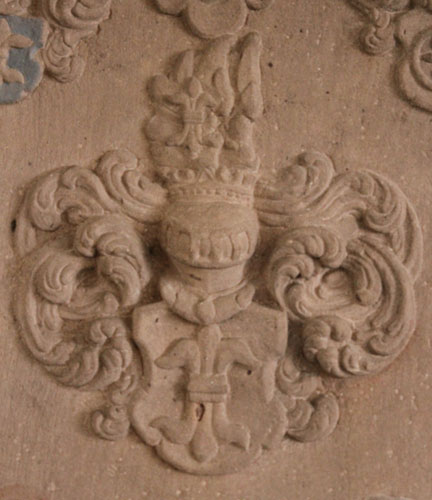 eine silberne Lilie. Das Oberwappen fehlt, das wäre auf einem