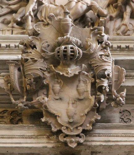 Das Wappen der Familie von Kannenberg ist unten in der Mitte angebracht, verdeckt den Faltenwurf des bis den Füßen reichenden Untergewandes und zeigt in Blau drei (2:1) silberne Henkelkannen mit Ausguß und beknauftem Deckel, auf dem blau-silbern bewulsteten Helm mit blau-silbernen Decken eine silberne Henkelkanne mit Deckel zwischen einem blauen Paar Büffelhörner, zweimal in der zweiten Farbe umwunden bzw. viermal schräg nach innen geteilt (Westfälisches Wappenbuch, Siebmacher Band: SchlA1 Seite: 50 Tafel: 37).