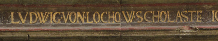 Das fünfte Wappen trägt die Inschrift "LVDWIG VON LOCHOW SCHOLASTE(R)".