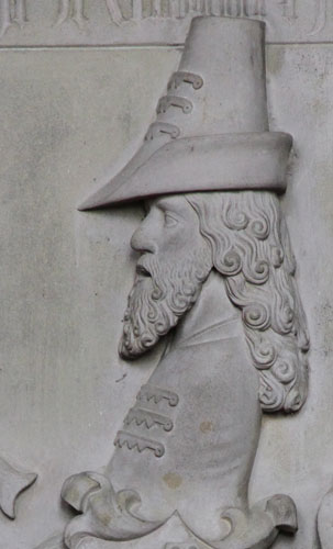 die Wappen-Dreierkombination an dem Brüstungsfeld: Oben sieht