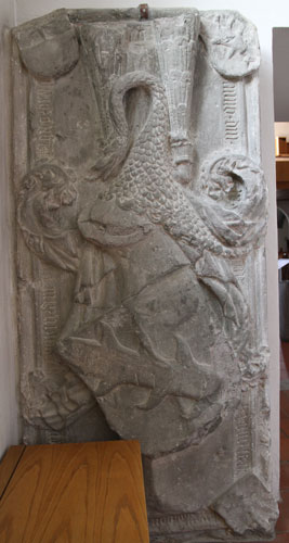 eines Ritters, die sich noch in situ am Ostpfeiler des