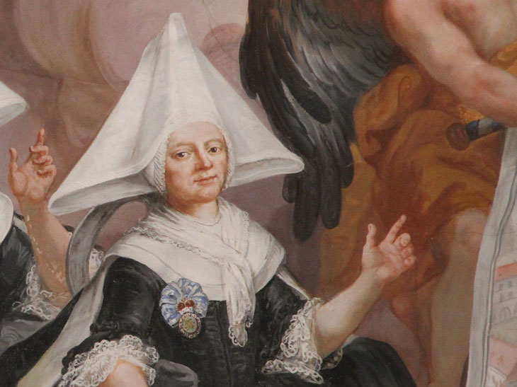 vorderster Stelle in der Gruppe wird die Äbtissin im Gemälde