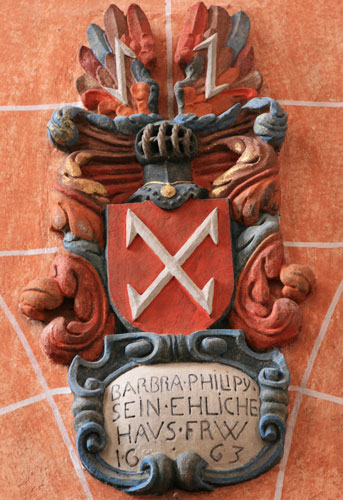Das andere Wappen für die Mutter der Barbara Philippi zeigt drei Lilien in einer Reihe über einer Teilung im Zinnenschnitt, Tinkturen, Name und Oberwappen sind nicht bekannt. Dieses Wappen taucht auch in keinem anderen Zusammenhang in Niederwerth auf, Hinweise willkommen.