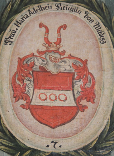 oben seitlich neben dem Äbtissinnenwappen, die anderen darunter