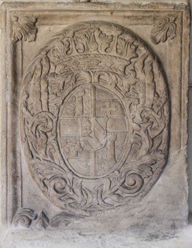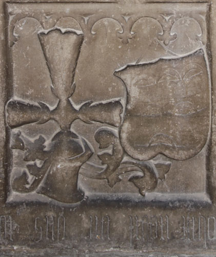 keinerlei Inschrift. Das Wappen läßt sich aber identifizieren,