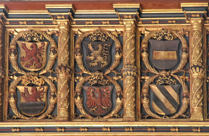 Ein weiteres sehenswertes Detail ist das "Fürstenchörl" mit insgesamt 14, in zwei Reihen angeordneten Wappen verschiedener Länder von Kaiser Karl V. auf der dem Kirchenschiff zugewandten Außenseite der Brüstung. Einige lassen sich identifizieren, andere geben Anlaß zur Vermutung, daß die Farben evtl. nicht ganz korrekt sind. Die meisten Schilde tragen auf dem oberen Rand eine filigran geschnitzte Krone, nur Aragon hat keine.