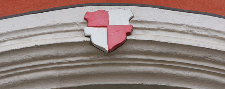 Als dieses Portal mit der Inschrift in das Gebäude eingefügt wurde, war der inschriftlich genannte Johann Friedrich Graf von Castell-Rüdenhausen (6.2.1675-23.6.1749) Landesherr. Er war der Sohn von Philipp Gottfried Graf von Castell-Rüdenhausen (11.11.1641-11.6.1681) und Anna Sybilla Florentina Wild- und Rheingräfin zu Dhaun (29.9.1648-12.3.1685), und er regierte 1681-1749, bis 1692 noch unter Vormundschaft. 1721 trat er als Landhofmeister in die Dienste der Markgrafen von Brandenburg-Ansbach. Seit 1732 war er kaiserlicher Geheimrat. 1729-1731 hatte er den Vorsitz des fränkischen Grafenkollegiums. Er lebte im Schloß Rüdenhausen, und dort wurde er in der von ihm selbst neu erbauten Kirche St. Peter und Paul bestattet (dort ist auch sein Epitaph). Graf Johann Friedrich war insgesamt fünfmal verheiratet, 1.) am 3.2.1695 mit seiner Cousine Gräfin Charlotte Juliane zu Castell-Remlingen (14.9.1670-5.2.1696), 2.) am 5.8.1696 mit Gräfin Charlotte Luise zu Hohenlohe-Neuenstein-Oehringen (4.9.1671-1.6.1697), 3.) am 22.2.1699 mit Katharina Hedwig Gräfin zu Rantzau (8.6.1683-12.3.1743), 4.) am 19.7.1743 mit Eleonore Christiane zu Hohenlohe-Neuenstein-Oehringen (1.3.1720-17.2.1746) und 5.) am 23.2.1747 mit Magdalena Dorothea zu Hohenlohe-Langenburg-Ingelfingen (9.9.1705-18.4.1762). Der Sohn aus der vierten Ehe folgte als regierender Graf nach, das war Friedrich Ludwig Carl Christian Graf von Castell-Rüdenhausen (17.2.1746-7.2.1803).