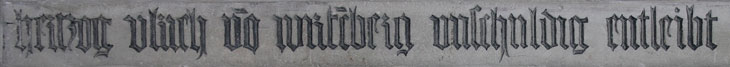 Wir beginnen die Reihe der Epitaphien in der Pfarrkirche Maria Sondheim mit einer besonders interessanten Persönlichkeit, mit Hans von Hutten (24.6.1486-7.5.1515) aus der Linie Frankenberg. Seine Grabplatte ist vom rein heraldischen Typus ohne Personendarstellung. Die auf dem Rand umlaufende Inschrift lautet: "Anno d(o)m(ini) Mo Vco und 15 / uff montag nach dem s(on)ntag Ca(n)tate starb d(e)r E(h)rb(are) u(nd) e(h)r(e)nfeste / hans vo(n) hutte(n) d(e)r durch / hertzog ulrich vo(n) wirt(t)e(m)berg unschuldig entleibt d(e)m g(ott) g(nade)". Die Schreibweise der Jahreszahl ist ungewöhnlich, die 1000 als lateinisches Zahlzeichen "M" mit hochgestelltem "o" für "Millesimo", die 500 als "V" mit hochgestelltem "co" für "Quingentesimo" (aus quinque centesimo) und die 15 in arabischen Ziffern. Sonntag Cantate oder in heute üblicher Schreibweise Kantate ist der 4. Sonntag nach Ostern oder der 5. Sonntag der Osterzeit. Ostersonntag war im Jahre 1515 der 8. April, nach alter Berechnung (julianischer Kalender). Folglich war Sonntag Cantate der 6. Mai, und verstorben ist Hans von Hutten am darauffolgenden Montag, den 7. Mai (in der Lit. wird oft fälschlich der 8.5. angegeben). Im Zentralfeld ist ein großes Vollwappen der Herren von Hutten dargestellt, in Rot zwei goldene Schrägbalken, auf dem ungekrönten Helm mit rot-goldenen Decken ein wachsender, rot gekleideter und bärtiger Mannesrumpf, auf dem Kopf eine rote, golden gestulpte Mütze mit drei schwarzen Hahnenfederbüscheln im Stulp und einem weiteren auf der Hutspitze.
