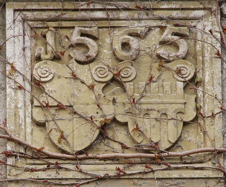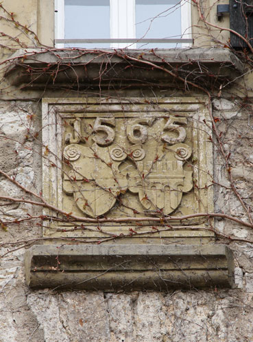 Stadtwappen von Kitzingen auf den Seiten des Hauses der
