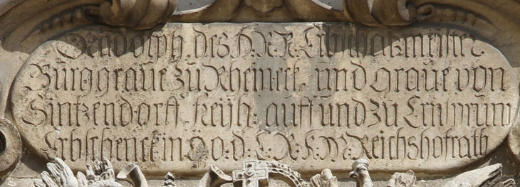 und graue von / Sintzendorff, freyh(err) auff und zu Erns(t)prunn