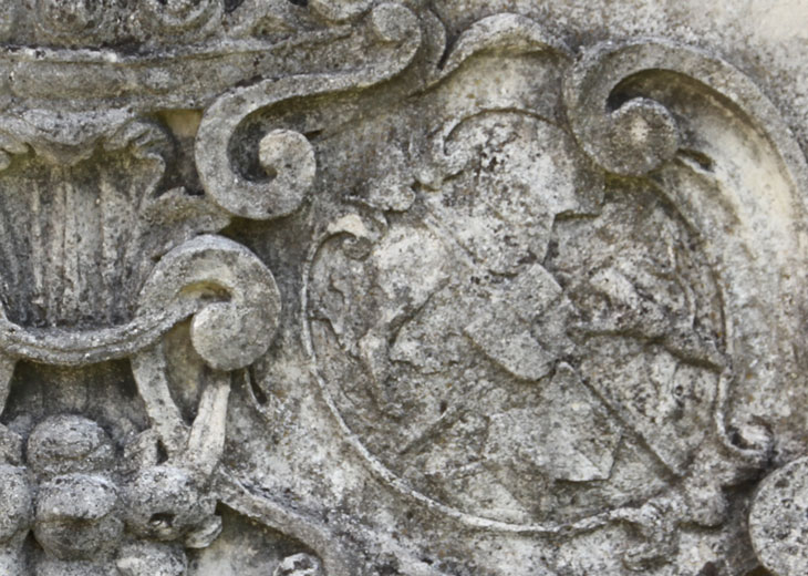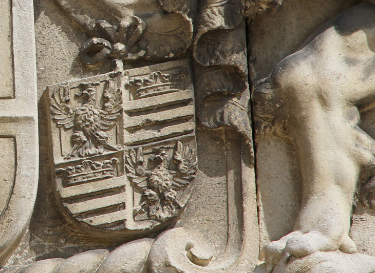 über dem Haupteingang: das heraldisch linke Beiwappen