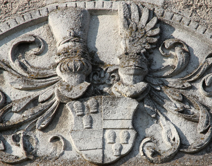 Beide Abb.: erstes Torhaus, linkes Wappen = von Puchheim