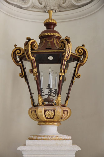 Lampen und Putto als Lampenhalter im Treppenhaus